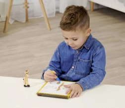 Praktyczny format bloku 17 × 19 cm jest idealny do plecaka, na wycieczki i do poczekalni. W opakowaniu znajduje się także urocza figurka żyrafy, która pobudza wyobraźnię i zabawę tematyczną, oraz pędzelek do dodatkowych technik z wodą.
