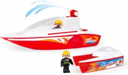 Dwie ruchome figurki załogi pasują do kokpitu i na pokład, więc dzieci mogą łatwo tworzyć własne historie – od gaszenia pożarów po odważne operacje ratunkowe. Wytrzymałe wykonanie i pływający design są idealne do zabawy w domu i na zewnątrz.