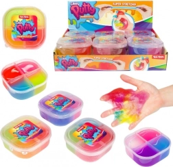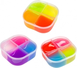Tęczowy slime jest idealny dla wszystkich, którzy chcą przeżyć coś niezwykłego i zabawnego. Masa w przezroczystych pojemnikach jest podzielona na cztery kolory, co pozwala na unikalne kombinacje i kolorowe eksperymenty.