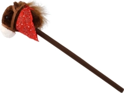 Z brązową pluszową głową i wyrazistą czerwoną chustką, dodaje atmosfery kowbojskiego klimatu w zabawie, podczas gdy solidny drewniany kij zapewnia stabilność i bezpieczeństwo. Idealny do użytku wewnątrz i na zewnątrz.