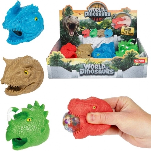 Głowa dinozaura do ściskania antystresowa 8 cm, 4 rodzaje, 12 szt. w pudełku