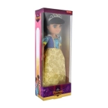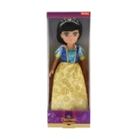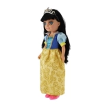 Przedstawiamy bajkową lalkę, która zachwyca swoim pięknem i dopracowanymi detalami. Lalka ma wysokość 38 cm i jest ubrana w wspaniałą niebiesko-żółtą suknię zdobioną kwiatowymi wzorami. Na głowie nosi srebrną tiarę, która podkreśla jej królewski wygląd. Ta lalka jest idealna do kreatywnej zabawy i oferuje wiele możliwości odgrywania ról. Zabawka ma ruchome kończyny, co pozwala na różne pozy, a dzięki wymiarom świetnie leży w dziecięcych dłoniach.