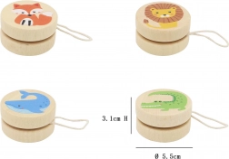 To drewniane jojo wykonane jest z wysokiej jakości materiału przyjaznego dla środowiska, co gwarantuje długą żywotność zabawki. Dzięki wymiarom 5,5 × 5,5 × 3,1 cm świetnie leży w dziecięcych dłoniach i jest łatwe w użyciu. Jojo występuje w czterech zabawnych wariantach: lew, lis, wieloryb i krokodyl, co pozwala dzieciom wybrać swojego ulubionego zwierzęcego przyjaciela.