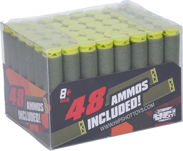 - 48 szt. w opakowaniu – wystarczająca liczba nabojów do dłuższej zabawy bez przerw.