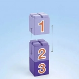 Trzy klocki do układania z liczbami 1, 2 i 3 wspierają wczesną umiejętność liczenia, sortowanie i budowanie wież.