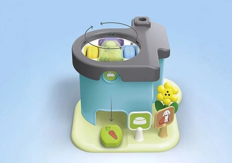 Ten czarujący hotel dla zwierząt został zaprojektowany tak, aby zainteresować maluchy i przedszkolaki. Dozownik karmy wbudowany w dach wspiera logiczne myślenie i koordynację: dzieci wkładają kolorowe kawałki karmy, obracają dachem i obserwują, jak karma zjeżdża po zjeżdżalni do właściwego zwierzątka. Każde zwierzątko ma swój kolorystycznie dopasowany domek i porcję karmy, co naturalnie uczy rozpoznawania kolorów.