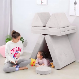 Osiem różnych elementów pozwala dzieciom każdego dnia tworzyć nowe konfiguracje – od kanapy, przez bazę do zabawy, po wygodną matę do czytania. Rozwija kreatywność i umiejętności DIY.