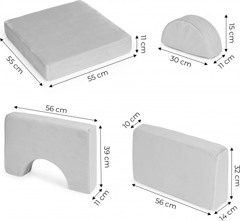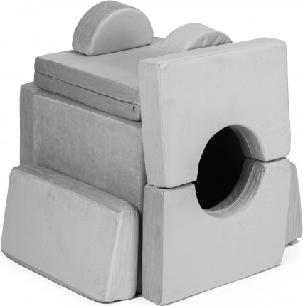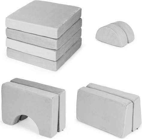 Elementy są wypełnione sprężystą, miękką pianką, która dopasowuje się do ciała i zapewnia wygodę podczas siedzenia, leżenia i zabawy.