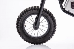 Ten dziecięcy elektryczny motocykl crossowy łączy sportowy wygląd i niezawodną wydajność dla pierwszych off‑road’owych wrażeń. Dzięki mocnej baterii 36 V, solidnej ramie i wyrazistemu bieżnikowi opon poradzi sobie na nieutwardzonych drogach i trawiastym terenie. Stylowe detale, takie jak rozruch na kluczyk i numer startowy, nadają autentyczny charakter motocrossowy.