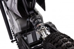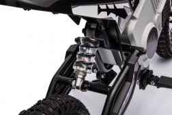 Solidne zawieszenie oraz szerokie, agresywne opony tłumią nierówności i zwiększają stabilność podczas jazdy w lekkim terenie.