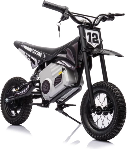 Odkryj zabawę w terenie z dziecięcym elektrycznym mini crossem na baterię 36V w eleganckim czarnym kolorze. Oferuje mocny napęd elektryczny, wytrzymałą ramę oraz opony terenowe dla pewności i stabilności na nierównej nawierzchni. Idealny dla młodych riderów, którzy chcą bezpiecznie ćwiczyć umiejętności jazdy i cieszyć się cichą, bezobsługową pracą.