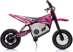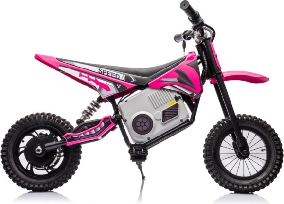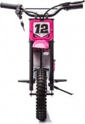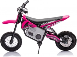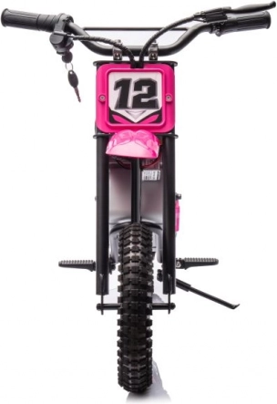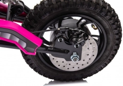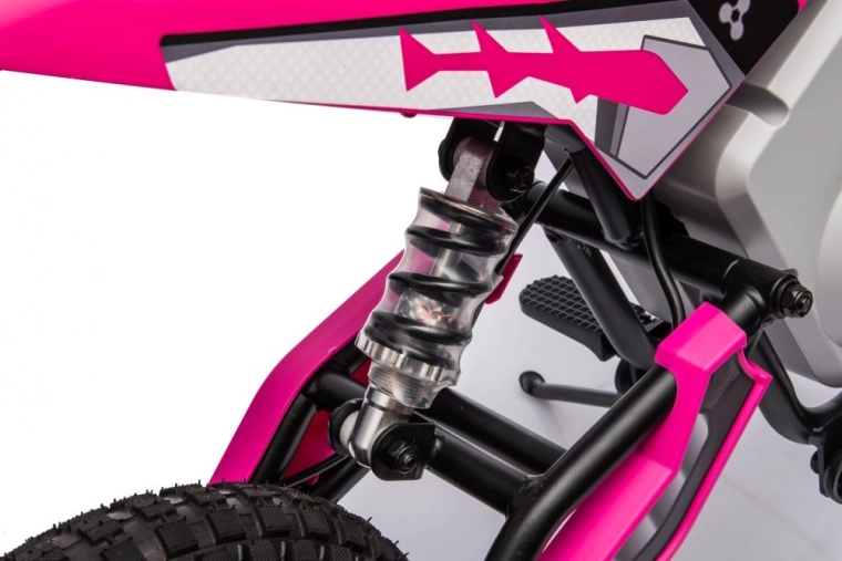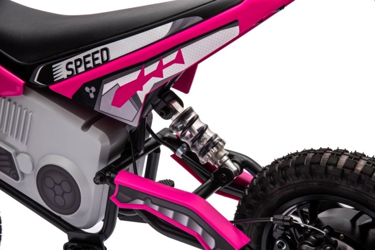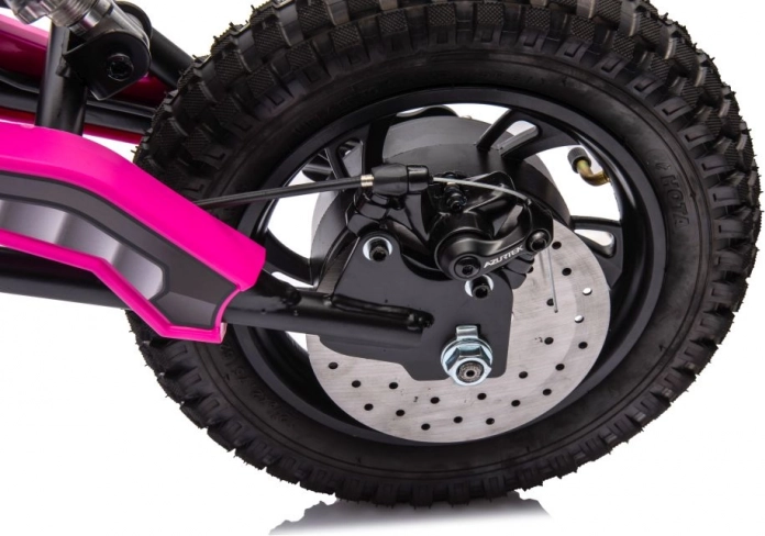 Stylowy dziecięcy elektryczny motocykl crossowy w kolorze różowym oferuje bezpieczną zabawę w terenie i na podwórku. Dzięki zasilaniu 36V, solidnym terenowym oponom i wytrzymałej konstrukcji jest idealny dla małych odkrywców. Łatwa obsługa, cicha i ekologiczna praca oraz sportowy wygląd sprawiają, że to doskonały wybór na pierwsze off-roadowe przygody.