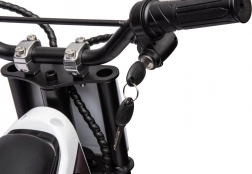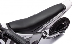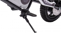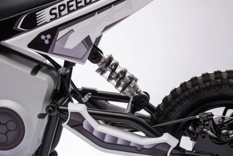 Praktyczne elementy, takie jak stopka, hamulce tarczowe i czytelne sterowanie, zwiększają bezpieczeństwo i komfort. Motocykl zaprojektowano dla dzieci i juniorów, którzy chcą rozwijać umiejętności jazdy w terenie, z naciskiem na stabilność i prowadzenie.