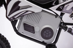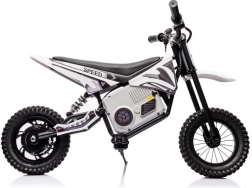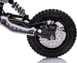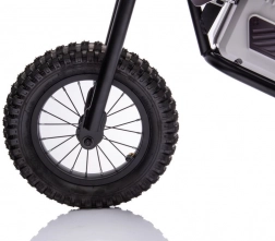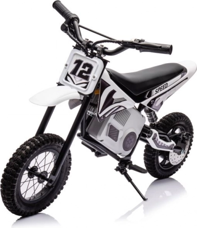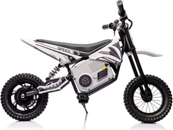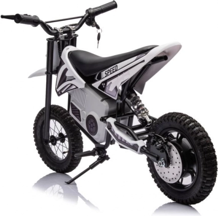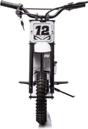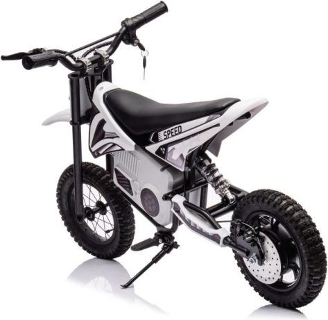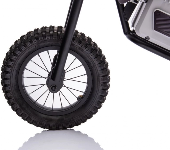 Ten dziecięcy elektryczny cross jest stworzony do przygód. Dzięki solidnej ramie, szerokiej kierownicy i głębokiemu bieżnikowi opon radzi sobie z nierównościami, żwirem i ziemią. Napęd elektryczny 36V zapewnia płynną akcelerację bez hałasu i emisji – idealny na podwórka, do parków i na lekki off-road.