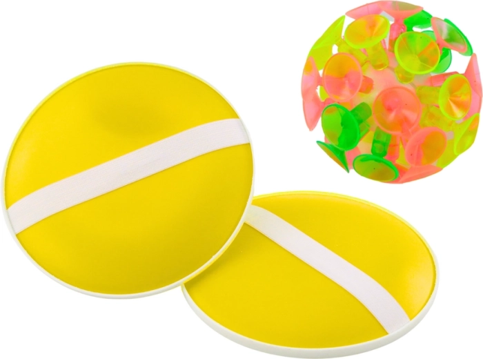Kolorowa piłeczka z przyssawkami jest lekka i umożliwia dynamiczną grę. Przyssawki pomagają przymocować piłeczkę do pałek.