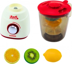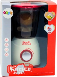 Realistyczny dziecięcy mikser w białoczerwonej kolorystyce oferuje efekty świetlne i dźwiękowe, obracające się plastikowe ostrza oraz 3 sztuki owoców dla jeszcze bardziej wciągającej zabawy w kucharza. Rozwija małą motorykę, koordynację i wyobraźnię dzieci. Zasilanie 3× AA (brak w zestawie).