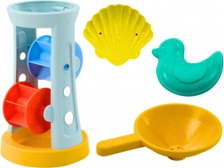 Podwójne kółka młynka ożywią każdą zabawę. Sitko oddzieli drobne cząstki, a lejek umożliwi nalewanie wody lub piasku i tworzenie efektów.