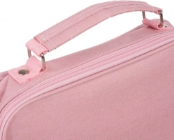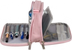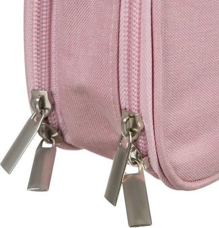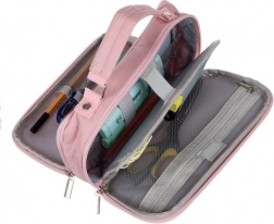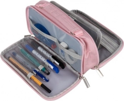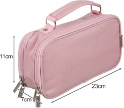 Praktyczny dwukomorowy szkolny piórnik z uchwytem w różowym kolorze oferuje przemyślaną organizację przyborów i trwałość do codziennego użytkowania. Dzięki dwóm częściom z podwójnymi zamkami zawartość jest zawsze bezpiecznie przechowywana, a jednocześnie szybko dostępna. Wytrzymały poliester, wiele kieszeni z siatki, elastyczne uchwyty na przybory do pisania oraz solidna, nitowana szlufka czynią go idealnym wyborem dla uczniów, studentów, a także do biura.