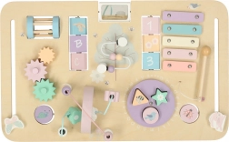 Ksylofon z pałeczką, sorter z klockami, koła zębate oraz mechanizmy przesuwne i obrotowe na długo angażują dzieci i motywują do odkrywania.