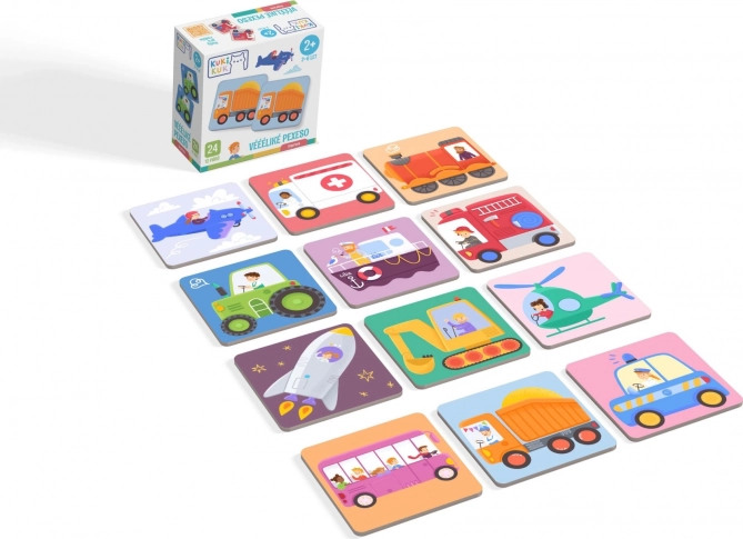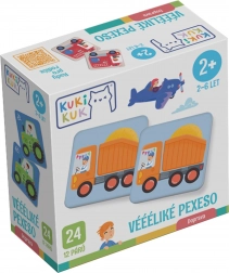 Odkryj zabawne i edukacyjne memo z pojazdami marki KukiKuk. Zestaw zawiera 24 duże karty o wymiarach 11 × 11 cm z solidnej tektury 2 mm, idealne dla małych dziecięcych rąk. Gra rozwija pamięć, spostrzegawczość i słownictwo, a także zawiera wskazówki dla rodziców i pedagogów dotyczące dodatkowych aktywności i wariantów zabawy. Wyprodukowano w Czechach, polecane dla dzieci 2–6 lat.