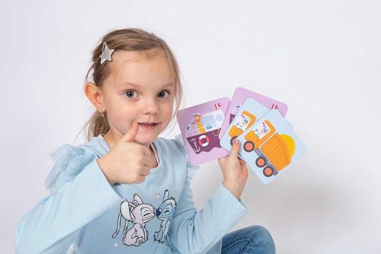 Klasyczne memo oraz warianty gier rozwijają umiejętności poznawcze, uczą nazw środków transportu i ich funkcji w atrakcyjnej formie.