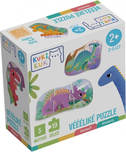 Zabawne i edukacyjne duże puzzle z dinozaurami dla najmłodszych rozwijają małą motorykę, myślenie logiczne i cierpliwość. Każdy motyw ma unikalny kształt i kolorowe oznaczenie na rewersie, dzięki czemu dzieci łatwo połączą tylko właściwe elementy. Zestaw zawiera 5 dinozaurów oraz praktyczne wskazówki dla rodziców. Wyprodukowano w Czechach.