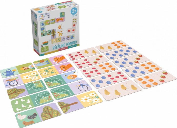 - 2 w 1 – domino obrazkowe i klasyczne z owocowymi kropkami