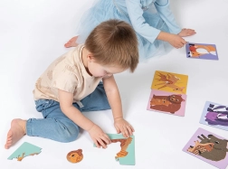 W zestawie znajdują się wskazówki i warianty zabaw dla różnych grup wiekowych: od prostego dopasowywania maluchów do rodziców, przez układanie według kolorowych teł, aż po zabawne zagadki bez podpowiedzi z awersu. Gra rozwija słownictwo, koordynację ręka–oko i wyobraźnię, a także zachęca do rozmów o przyrodzie i życiu zwierząt. Wyprodukowano w Czechach.