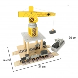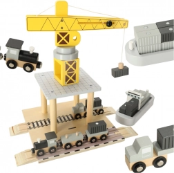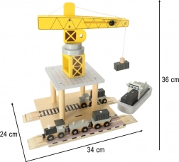 Dzieci pokochają ten drewniany portowy żuraw, który oferuje możliwość zabawy w rozładunek kontenerów ze statków na samochody i pociągi. Ten zestaw zapewnia wiele elementów, które umożliwiają grę w różne scenariusze, rozwija wyobraźnię i zdolności manualne Twojego dziecka.