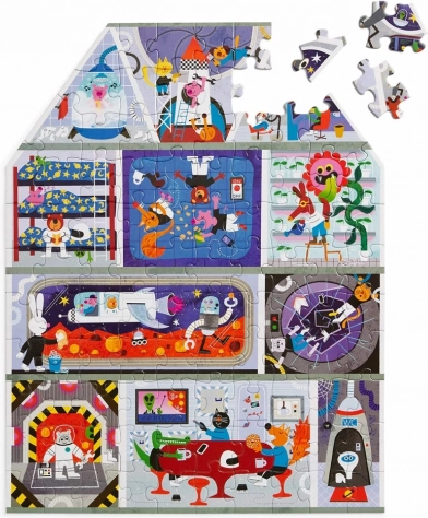 Zanurz się z dziećmi w zabawny świat na Marsie. Oryginalne puzzle w kształcie domu oferują ilustracje pełne pozaziemskich przygód i pobudzają dziecięcą wyobraźnię. Dzięki 100 elementom to świetny wybór dla dzieci od 5 lat, które chcą poćwiczyć logikę i percepcję przestrzenną.