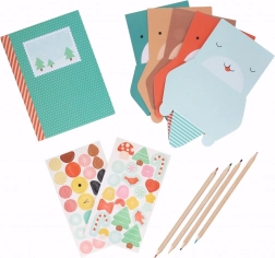Zestaw zawiera 12 zwierzątkowych listowników, pamiętnik, 2 arkusze naklejek i 4 kolorowe ołówki – gotowe do tworzenia od razu po otwarciu.