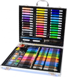 Zestaw zawiera aż 150 elementów, które zaspokoją potrzeby każdego małego artysty. W środku znajdują się kolorowe kredki do rysowania i szkicowania, pastele idealne do tworzenia delikatnych, miękkich przejść kolorystycznych oraz farby w różnych odcieniach do ekspresyjnego malowania. W komplecie są także pędzelki, aby dziecko mogło eksperymentować z różnymi technikami malarskimi, oraz ołówki, które są niezbędnym narzędziem każdego artysty.
