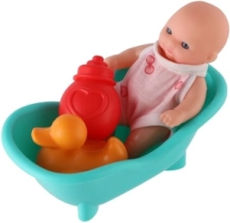 Ten kolorowy zestaw kąpielowy z laleczką świetnie sprawdzi się w codziennej zabawie. Dzięki solidnemu plastikowemu ciału laleczka jest trwała i łatwa w pielęgnacji. Wanienka i drobne akcesoria, takie jak buteleczka czy kaczuszka, wspierają kreatywną zabawę i rozwój motoryki małej.