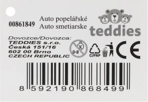 Tematyczne nadruki i funkcjonalne elementy (np. skrzynia, zbiornik) uczą dzieci o czystości miasta, recyklingu i pracy na budowie.