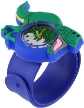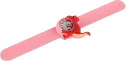 Dziecięcy zegarek z motywem dinozaura łączy zabawę i funkcjonalność. Samonawijający pasek typu slap po delikatnym „pstryknięciu” sam owija się wokół nadgarstka, dzięki czemu dziecko założy zegarek bez pomocy dorosłych. Kolorystycznie odróżnione wskazówki ułatwiają naukę czasu i wspierają motorykę małą oraz samodzielność.