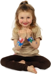 Wystarczy lekko „pstryknąć” o nadgarstek, a pasek sam się dopasuje. Szybkie, zabawne i bezpieczne zakładanie bez skomplikowanego zapinania.