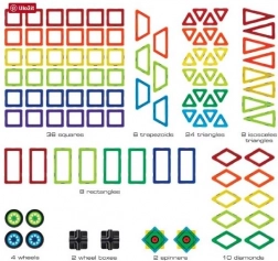 Dzięki kolorowym geometrycznym kształtom, zestaw jest idealny do rozwoju dziecięcej kreatywności poprzez nieskończone kombinacje konstrukcji.