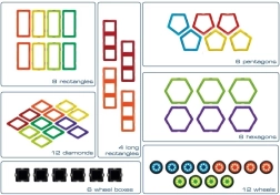 W zestawie znajduje się szczegółowy opis zawartości oraz strony z inspiracjami. Produkty GeoSmart nie są kompatybilne z innymi markami magnetycznych klocków konstrukcyjnych.