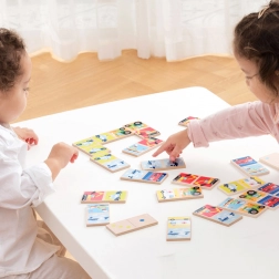 Drewniane domino to zabawna i edukacyjna gra, która oferuje nieskończone możliwości rozwoju i nauki dla małych dzieci. Zawiera 28 dwustronnych kamieni z ilustracjami środków transportu z jednej strony i kropkami z drugiej. To doskonały sposób, by dzieci mogły w przyjemny sposób doskonalić umiejętności rozwiązywania problemów i logicznego myślenia.