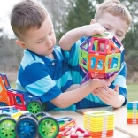 Magnetyczna układanka GeoSmart Deluxe Zestaw Kółkowy oferuje nieskończone możliwości kreatywnego budowania. Dzieci mogą tworzyć różnorodne oryginalne konstrukcje, zwierzątka lub pojazdy. Zestaw pomaga rozwijać podstawowe pojęcia geometrii, kolory i kształty oraz pozwala zrozumieć koncepcje figur 2D i 3D.