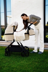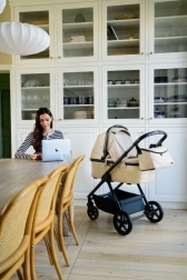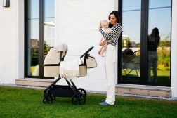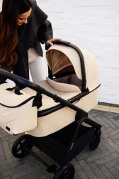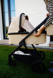 Wózek MoMi GISELLE 2w1 będzie służył przez długie lata. Dzięki elementom wchodzącym w skład wózka można używać gondoli dla młodszych dzieci, a po zmianie siedziska za pomocą przycisków pamięci łatwo przekształcić go w wózek spacerowy.