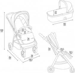 Wózek MoMi GISELLE 2w1 – zestaw gondoli i wózka spacerowego z akcesoriami