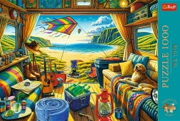 Motyw „Podróż kamperem” z kolekcji Tea Time zachwyca bogactwem szczegółów – od gitary, przez latarnię, po uroczego psa w kamperze z widokiem na plażę. Puzzle są idealne do relaksu, treningu koncentracji oraz wspólnego spędzania czasu z rodziną i przyjaciółmi.