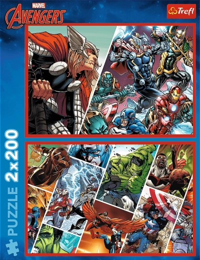 Odkryj świat superbohaterów dzięki dwóm oryginalnym ilustracjom przedstawiającym ikoniczne postacie zespołu Avengers. Każde puzzle ma 200 elementów i po ułożeniu tworzy szczegółową ilustrację o wymiarach 410 × 275 mm. Idealne dla dzieci i dorosłych fanów MARVEL, którzy szukają jakości i świetnej zabawy przy układaniu.