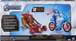 Iron Man i Kapitan Ameryka mają swoje charakterystyczne pojazdy – czerwony samochód dla Iron Mana i niebieski motocykl dla Kapitana Ameryki.