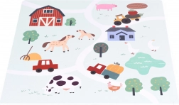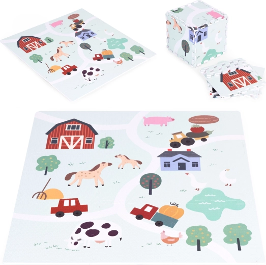 Dziecięca piankowa mata z motywem farmy łączy bezpieczeństwo i zabawę w jednym. Oferuje 21 elementów puzzli, wymiary 90,5 × 90,5 cm oraz grubość 1 cm dla wygodnej zabawy i pierwszych kroków. Wykonana z certyfikowanej pianki EVA, jest antypoślizgowa, łatwa w czyszczeniu i chroni przed chłodem podłogi – idealna do kreatywnej zabawy i nauki dla dzieci od 3 lat.