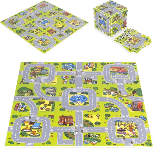 Ta wysokiej jakości dziecięca mata do zabawy z wytrzymałej pianki EVA tworzy wesołe miasteczko z drogami, budynkami i parkami – idealne dla samochodzików, figurek i kreatywnych opowieści. Elementy łączą się jak puzzle, dzięki czemu dywanik szybko złożysz i schowasz. Materiał jest miękki, sprężysty i antypoślizgowy, amortyzuje drobne upadki i chroni przed chłodem podłogi.