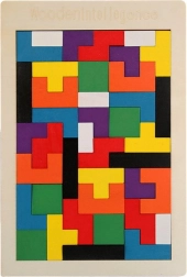 Odkryj zabawną i edukacyjną grę dla dzieci: drewniane puzzle z 40 kolorowymi elementami, które należy ułożyć w spójny prostokąt. Wysokiej jakości drewniane wykonanie zapewnia trwałość i długą żywotność, a gra rozwija myślenie logiczne, cierpliwość oraz małą motorykę. Odpowiednie dla dzieci od 3 lat, z certyfikatem CE i zgodnością z normą EN71.