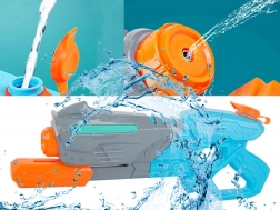Mechanizm pompujący wytwarza silny strumień wody, którym łatwo trafisz w odległe cele i wygrasz każdą wodną bitwę.