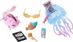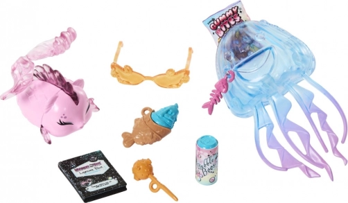 W zestawie znajduje się urocza pirania Neptuna oraz bogaty komplet tematycznych akcesoriów: przezroczysty plecak z motywem meduzy, okulary przeciwsłoneczne, notes, ołówek z rybką, „lód”, „żelki” i „napój musujący”. Te dodatki pobudzają wyobraźnię i rozwijają zabawę fabularną.